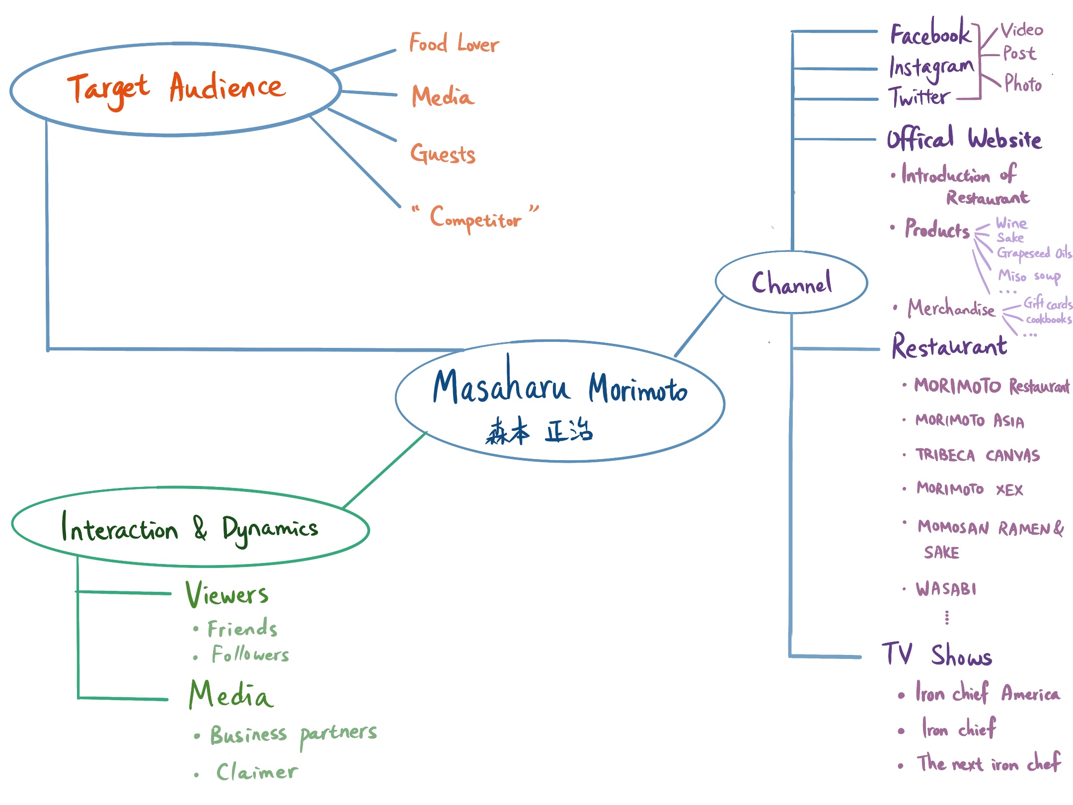 I think Morimoto can appeal to a very broad audience. They can be food lovers, restaurant patrons, food media and “competitors." Everyone can read about his restaurant, his cooking, his dishes and so on his media account. It can also attract strangers to become fans or customers. Both media workers and “competitors" can get to know him through his media accounts.